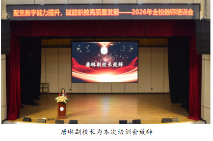 为持续强化师资队伍建设,赋能学校职业教育高质量发展,2026年1月20日下午,“聚焦教学能力提升,赋能职教高质量发展”2026年全校教师培训会在学术报告厅成功举行。