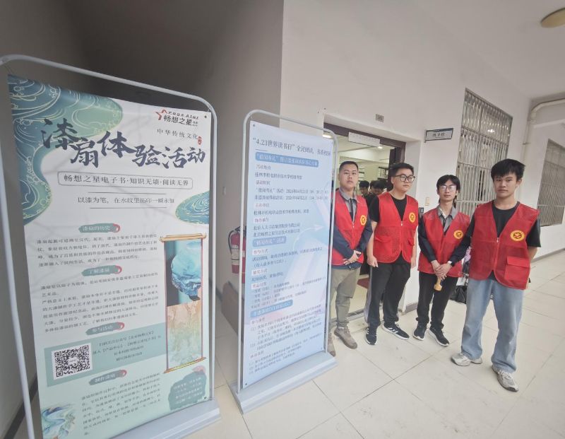 为迎接第28个世界读书日,丰富校园文化生活,传承中华优秀传统文化,4月21日,桂林市机电职业技术学校在图书馆举办“轻嗅书香,阅见未来”阅读推广暨非遗漆扇DIY体验活动。本次活动由学校教务科、团委主办,北京人天书店集团、北京畅想之星信息技术有限公司协办,吸引全校师生踊跃参与。